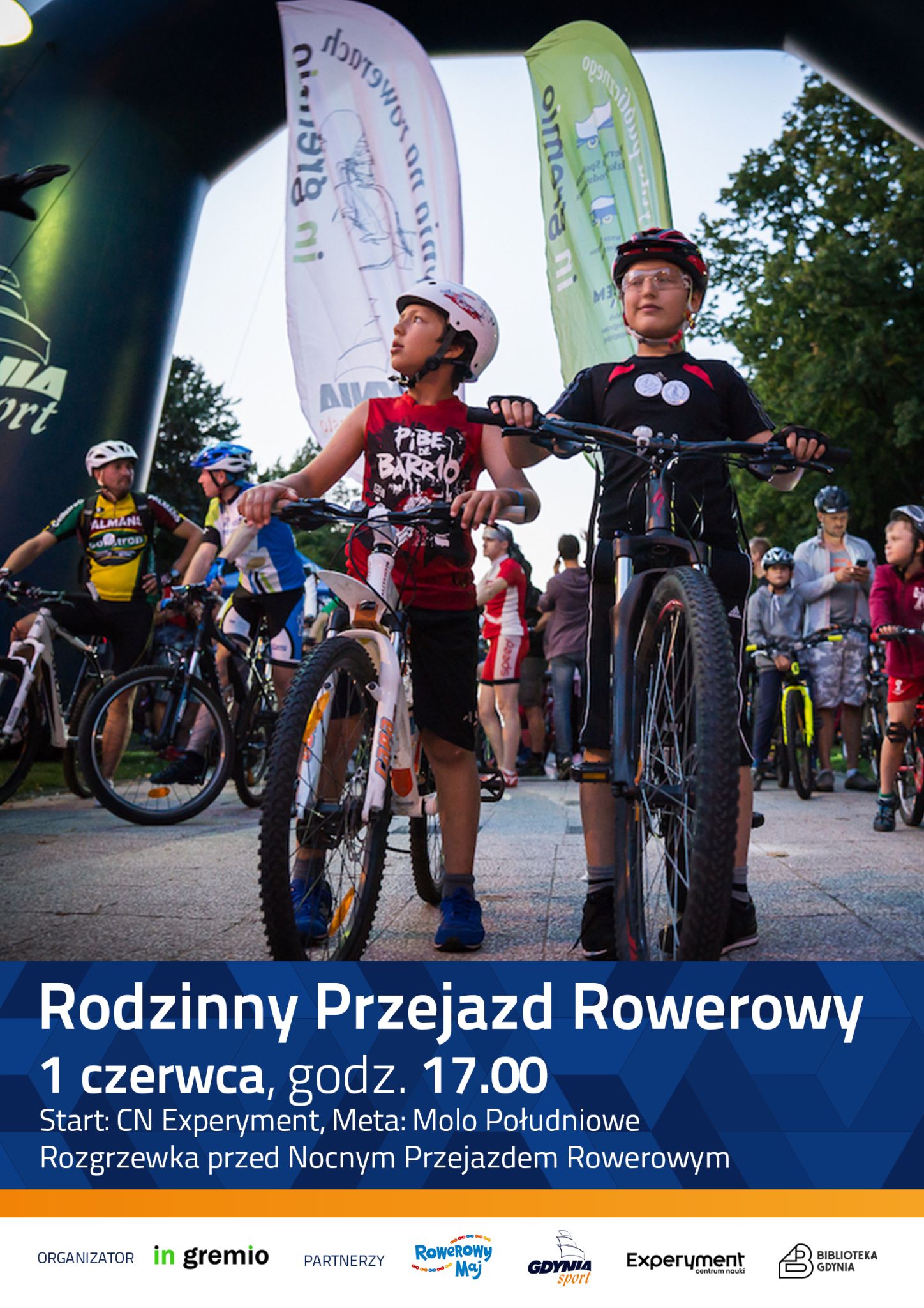 W Centrum Nauki Experyment o godzinie 17:00 nastąpi podsumowanie i ogłoszenie wyników projektu „Rowerowy Maj”, po którego zakończeniu wystartuje Rodzinny Przejazd Rowerowy podsumowujący projekt. Jego trasa będzie wiodła przez Aleję Zwycięstwa, Piłsudskiego, Bulwar Nadmorski, Skwer Kościuszki na Molo Południowe, gdzie nastąpi finisz. Organizatorem przejazdu jest Stowarzyszenie In gremio.