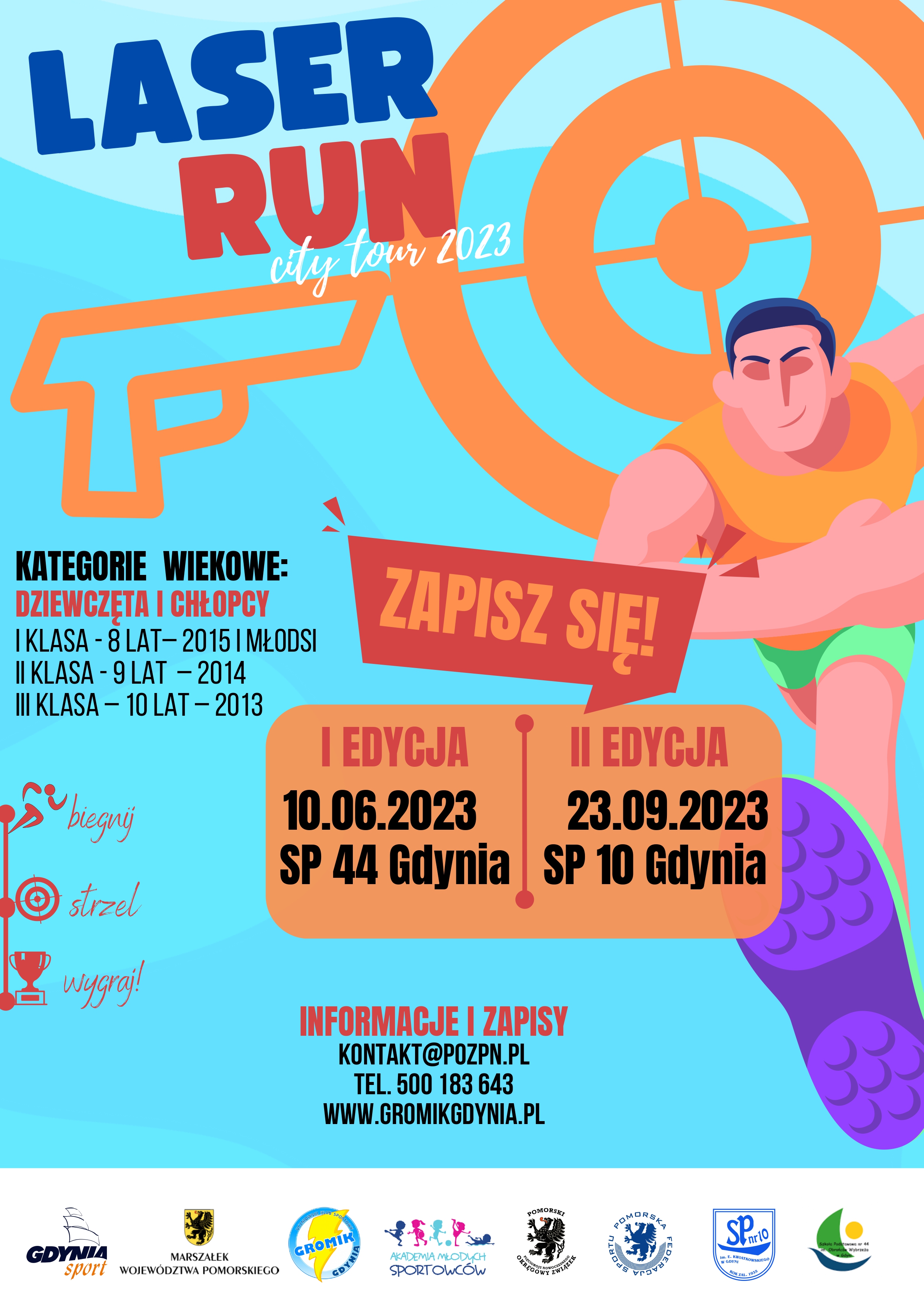 Dwubój pięciobojowy – strzel i biegnij o nazwie Laser Run City Tour Gdynia 2023 odbędzie się 10 czerwca. Jest to pierwsza z dwóch edycji imprezy. W zawodach wystartują zawodnicy z rocznika 2013-2015.