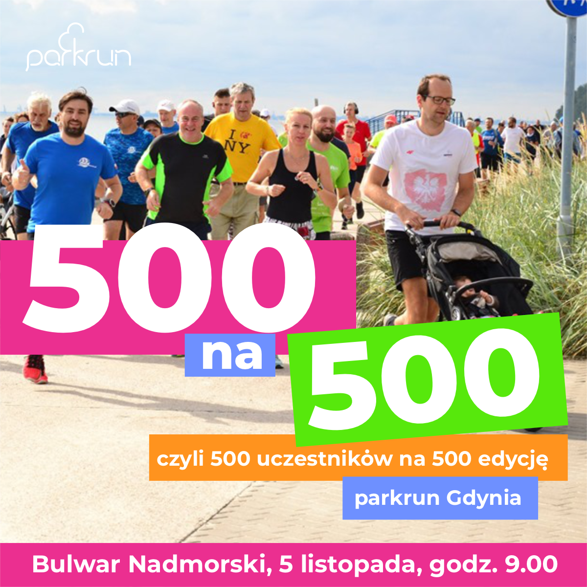 5 listopada listopada zostanie zorganizowana pięćsetna edycja parkrun Gdynia, do udziału w której organizatorzy zapraszają jak najliczniejsze grono mieszkańców Gdyni, a ich marzeniem jest zgromadzenie pięciuset uczestników na linii startu. Dotychczasowy rekord uczestników wynosi 390 osób i ustanowiony został 16 kwietnia 2016 roku. Organizatorzy jubileuszowej edycji przygotowali dla wszystkich, którzy miną linię mety niespodziankę, więc tym bardziej warto wziąć udział w sobotnim biegu.