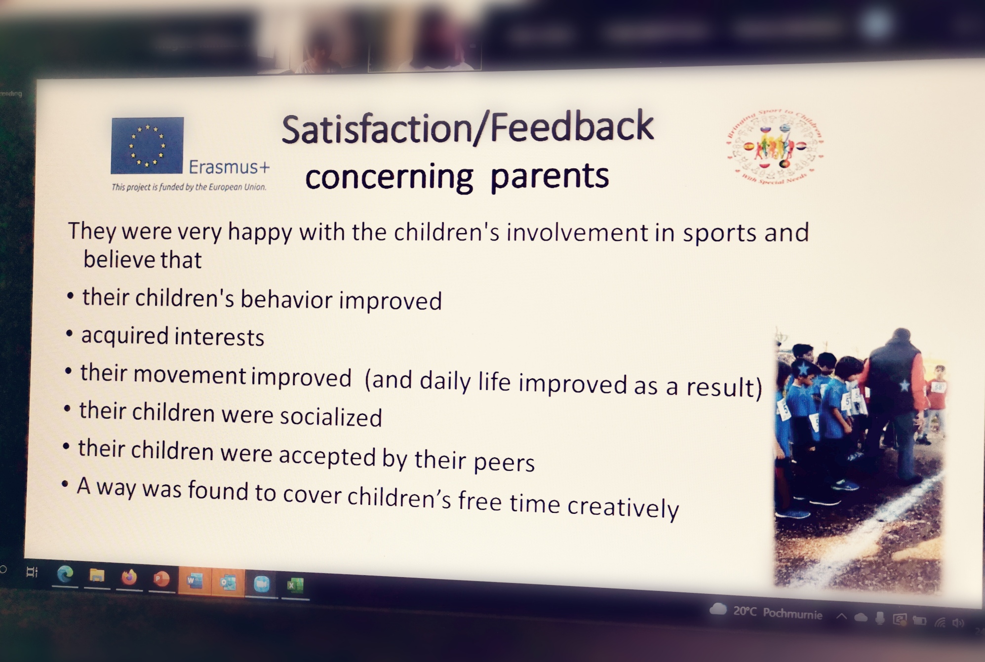 Ponadto lider projektu wyświetlił uczestnikom spotkania materiały dotyczące korzyści sportu dla dzieci ze specjalnymi potrzebami oraz przykłady dobrych praktyk w sporcie i integracji dzieci z różnymi dysfunkcjami.